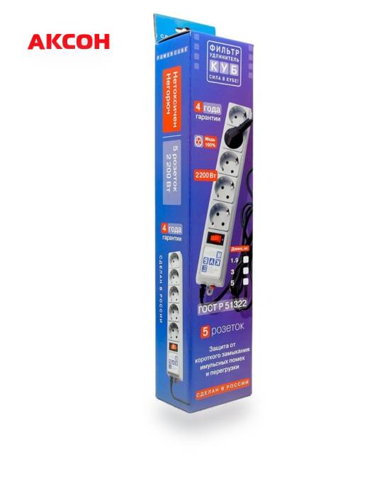 фильтр сетевой power cube b 1,9 м 5 розеток (серый) 10а/2,2квт spg-b-6 продается в интернет-магазине Аксон