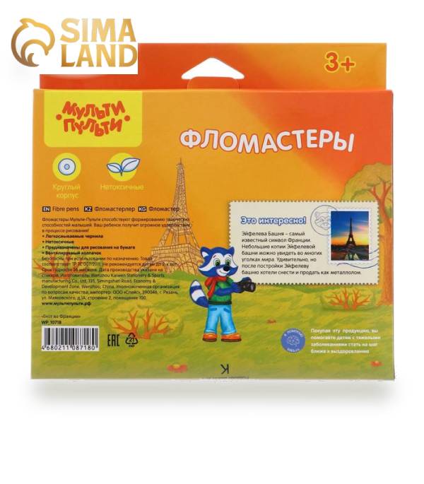 Фломастеры специально предназначены для детей от 3-х лет. Они имеют специальное строение пишущего узла, который при сильном нажатии не деформируется и не вдавливается. Чернила на водной основе легко отстирываются с одежды и смываются с рук водой, абсолютно безопасны. Фломастеры имеют утолщенную круглую форму корпуса, благодаря чему ими удобно рисовать маленьким художникам и безопасный вентилируемый колпачок.