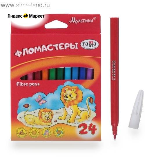 Фломастеры 24 цвета, "Гамма" "Мультики", в картонной коробке продается в интернет-магазине Яндекс Маркет