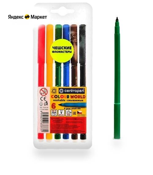Фломастеры 6 цветов 2.0 мм Centropen 7550 ТП Colour World, блистер, смываемые, линия 1.0 мм продается в интернет-магазине Яндекс Маркет