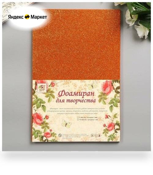 Фоамиран Рыжий блеск 2 мм формат А4 (набор 5 листов) продается в интернет-магазине Яндекс Маркет