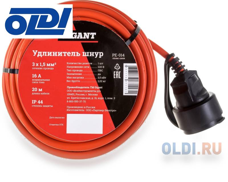Удлинитель оснащен литой вилкой для безопасного соединения и имеет номинальную силу тока 16А. Заземление присутствует, что обеспечивает дополнительную безопасность при использовании.