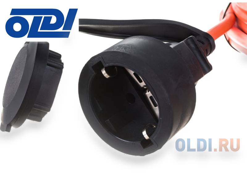 Удлинитель оснащен обрезиненным штепсельным гнездом, что позволяет подключать к нему электроприборы, требующие мобильного перемещения, такие как электрогазонокосилки. Это обеспечивает удобство и безопасность использования.
