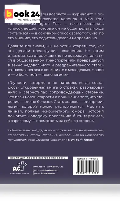 Глупости, которые я не натворю, когда состарюсь продается в интернет-магазине Book24Эксперт: Наталья Перова, онлайн-шопинг-гидДата рецензии: 11 ноября 2025 годаРекомендация к покупке положительная