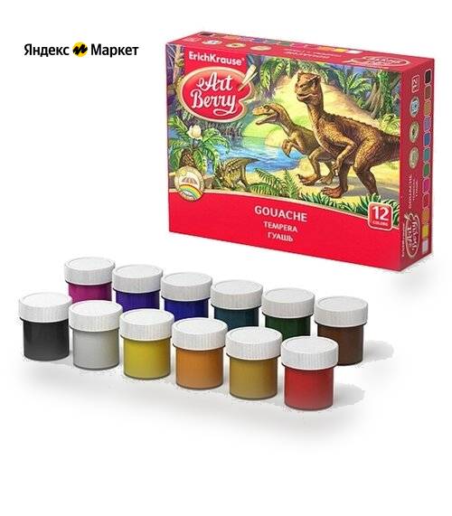 Гуашь 12 цветов х 20 мл, ErichKrause, УФ-защита яркости, в картонной упаковке продается в интернет-магазине Яндекс Маркет