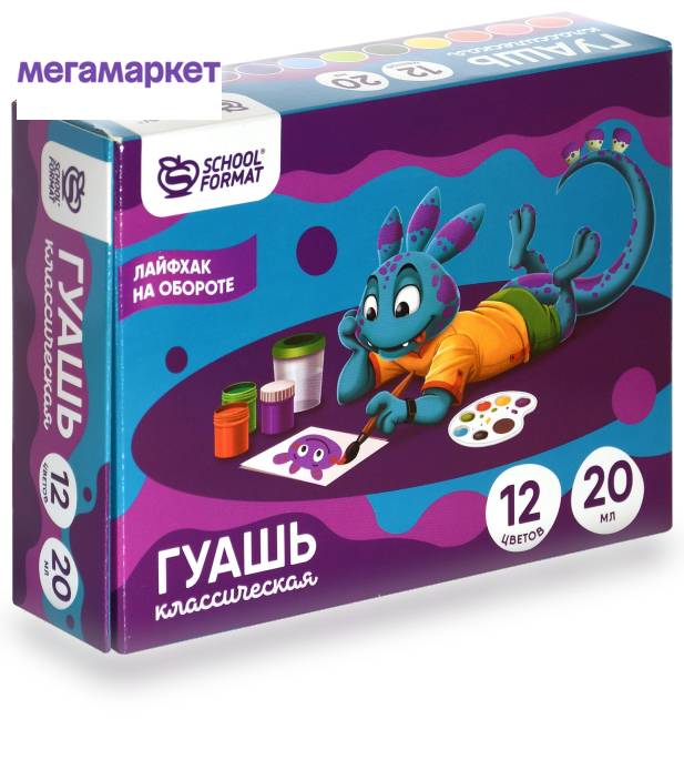 Гуашевые детские краски «Мультики» отличаются высокой плотностью и укрывистостью, легко наносятся на бумагу или картон и быстро высыхают. После высыхания рисунок приобретает матово-бархатистую поверхность. Яркие цвета прекрасно смешиваются между собой, позволяя получать новые красивые и чистые оттенки. Краски «гамма» изготовлены на основе натуральных компонентов и высококачественных пигментов. Краски для рисования легко смываются с рук. Гуашь «Мультики» фасуется в новую удобную упаковку – блок-тару, баночки спаяны между собой и находятся в одной «связке», что позволяет ребенку хранить краски разных цветов вместе, препятствуя их случайному опрокидыванию с рабочей поверхности, а также потере крышечек. Хорошая герметичность баночек: они удобно, легко открываются и закрываются без усилий. Набор красок упакован в яркую картонную упаковку.
