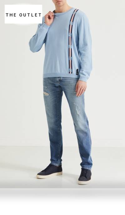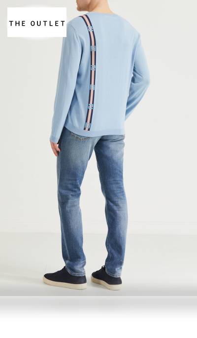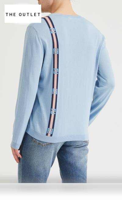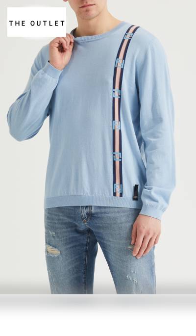 Хлопковый джемпер голубого цвета с логотипами продается в интернет-магазине The Outlet