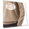 Бежевый джемпер связали из хлопка пима. Этот сорт выращивают только в Перу и на юго-западе США, и текстиль из него сравнивают то с кашемиром, то с шелком. Такой трикотаж почти в два раза легче и в пять раз прочнее обычного хлопкового. Супертонкие и длинные волокна (а их в каждой нити пряжи двенадцать) обеспечивают идеальный микроклимат. На рукаве — патч с фирменной акулой.