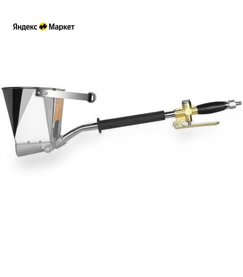 Инструмент состоит из контейнера, куда заливается раствор, а также трубки-держателя с обратным клапаном для сжатого воздуха и разъемом. Контейнер выполнен из нержавеющей стали, благодаря чему устойчив к коррозии и рассчитан на длительный срок службы. Рекомендуемое расстояние между ковшом и стеной при нанесении раствора может составлять от 5 до 10 см.