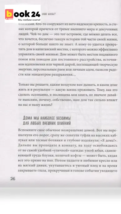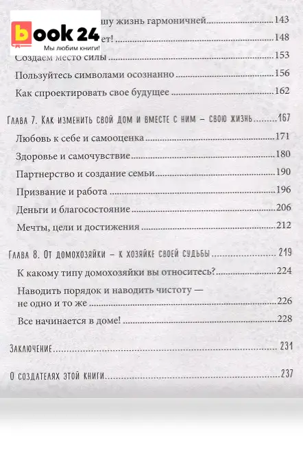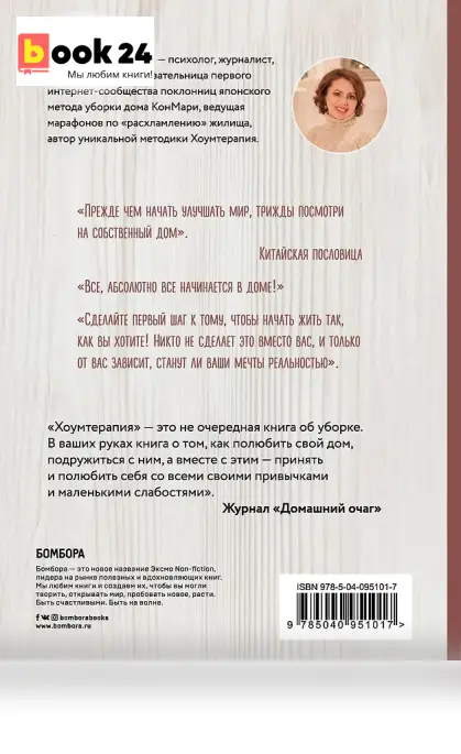 Несколько лет назад в руки Натальи Будиловой попала книга Мари Кондо "Магическая уборка". Это событие полностью изменило ее жизнь. Вдохновленная Наталья создала первое интернет-сообщество поклонниц японского метода уборки дома КонМари и начала вести он-лайн марафоны по "расхламлению". Наблюдения за результатами этих марафонов, знания китайской системы фэн-шуй и психологическое образование подтолкнули ее на создание собственного авторского метода - Хоумтерапии. То, как мы себя чувствуем, физически и эмоционально, сколько зарабатываем, насколько счастливы в личной жизни, как быстро сбываются наши мечты, - это и многое другое в нашей жизни зависит от того, в какой обстановке мы живем: работаем, отдыхаем, общаемся, спим. Хоумтерапия поможет вам "подружиться" со своим домом, полюбить его, и ваш дом обязательно ответит взаимностью.