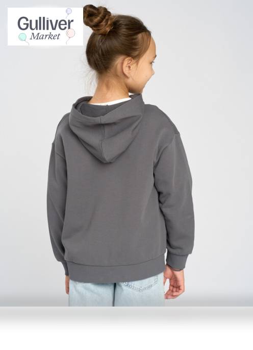Худи для девочки серое оверсайз с капюшоном и аппликацией Button Blue (170) продается в интернет-магазине Гулливер Маркет