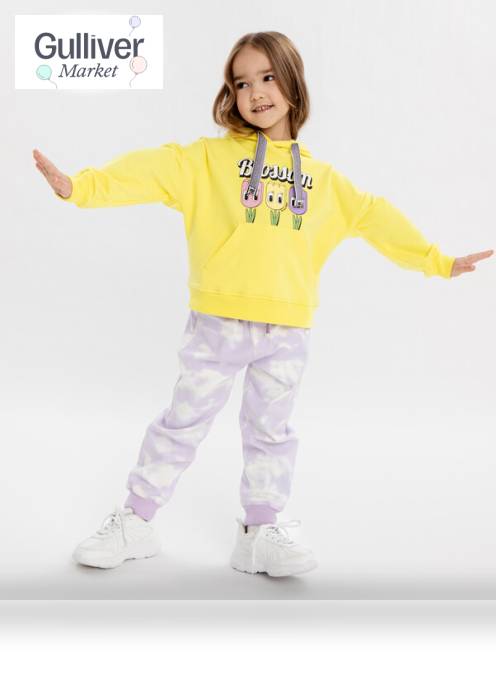 Желтая толстовка с капюшоном и карманом. Эта удобная и практичная вещь станет незаменимой в гардеробе ребенка. Худи сделано из хлопка и эластана. Такой состав обеспечивает комфорт и долговечность изделия, худи простое в уходе и отлично тянется, сохраняет форму даже после многократных стирок. Капюшон на завязках обеспечит защиту от ветра, солнца и посторонних взглядов. Резинки внизу худи и на рукавах дополнительно защищают от холода и ветра. Эта толстовка — идеальная вещь в гардеробе девочки благодаря цветочному принту. Толстовка с капюшоном — это универсальная вещь, которую можно носить как каждый день, так и на прогулке или в спортивном зале.
