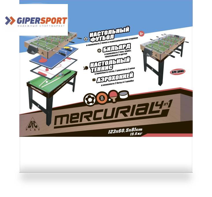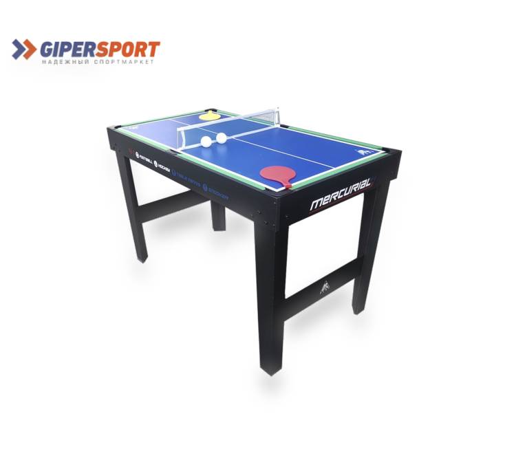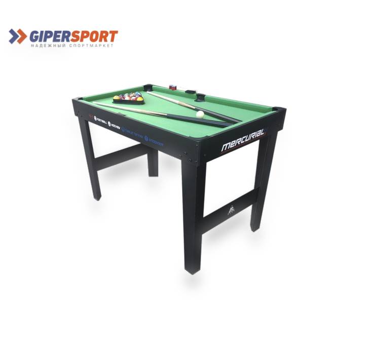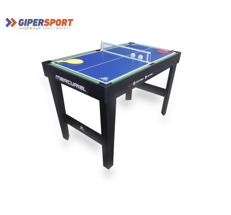 Многофункциональный игровой стол MERCURIAL 4ft — то, что нужно для большой компании! Играйте в футбол, бильярд, настольный теннис и аэрохоккей на одном столе, легко меняя игровые поля. Яркое оформление и стильный дизайн сделают игру ещё более увлекательной.