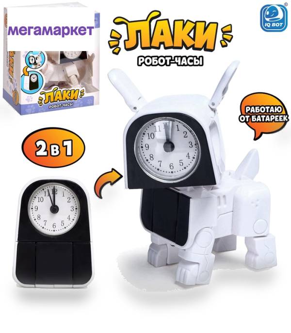 IQ BOT Робот-часы «Щенок», трансформируется в будильник, работает от батареек, цвет белый продается в интернет-магазине МегаМаркет