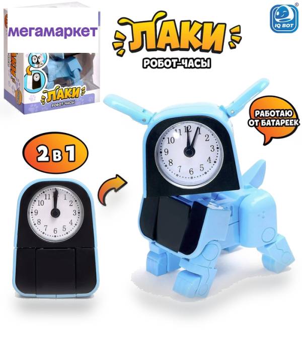 IQ BOT Робот-часы «Щенок», трансформируется в будильник, работает от батареек, голубой продается в интернет-магазине МегаМаркет