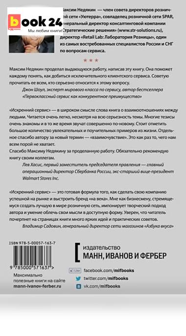 Искренний сервис. Как мотивировать сотрудников сделать для клиента больше, чем достаточно. продается в интернет-магазине Book24Эксперт: Святослав В., товарный критикДата рецензии: 29 октября 2025 годаРекомендация к покупке нейтральная