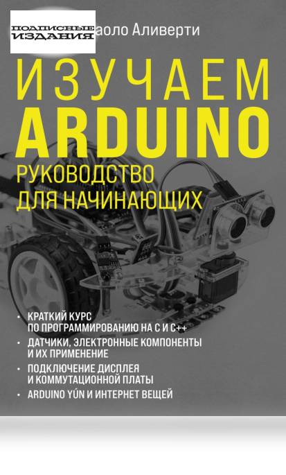 Самая понятная книга по Arduino для новичков. Настольная книга начинающего робототехника, написанная итальянским инженером Паоло Аливерти, специалистом в области 3D печати, интернета вещей и интерактивных технологий. Благодаря этой книге читатель познакомится с легендарной итальянской платформой Arduino, узнает азы электротехники и всего того, что необходимо уметь и знать, прежде чем начать собирать собственные проекты. В дружелюбной манере простым языком автор раскрывает основные понятия и термины, рассказывает о типах плат и проводит читателя по пути от абсолютного новичка до подкованного пользователя, готового к созданию собственных проектов на Arduino. Главный итальянский энтузиаст электроники, инженер и специалист по 3D-печати Паоло Аливерти приглашает вас в захватывающее путешествие по миру Arduino. Из этой книги вы узнаете историю легендарного конструктора, научитесь его программировать, получите самые полные сведения об электронных компонентах, датчиках и транзисторах, с которыми работает Arduino, и создадите свои первые проекты. В ней вы найдете множество цветных иллюстраций и понятных новичку схем, а также интересные задания для самостоятельной работы. Для чтения этой книги вам не потребуется никаких дополнительных знаний и навыков — только Arduino и любовь к электротехнике!