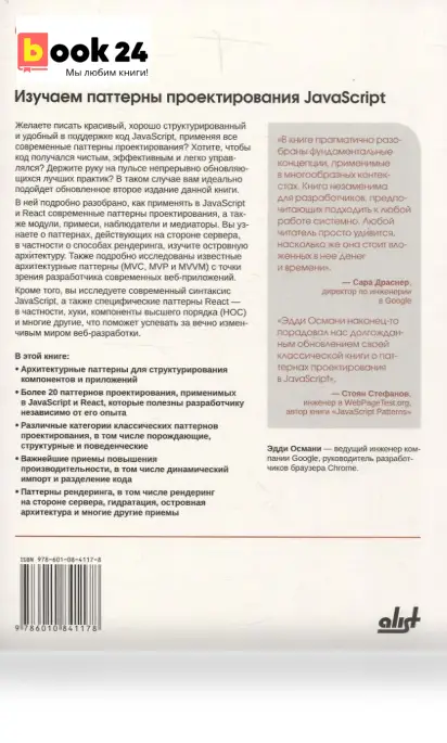Эта книга является незаменимым пособием для профессиональных разработчиков современных веб-приложений на JavaScript. Читатель найдет в ней все, что требуется знать о современном состоянии языка JavaScript, его достоинствах и недостатках, новых языковых средствах, внедренных в последних версиях стандарта ECMAScript, передовых приемах отладки и тестирования кода, а также инструментальных средствах разработки. Книга изобилует многочисленными практическими и подробно разбираемыми примерами кода, повторно используемых функций и классов, экономящих время разработчиков. Она помогает им овладеть практическими навыками написания динамических веб-приложений на высоком профессиональном уровне, а также повысить свою квалификацию.