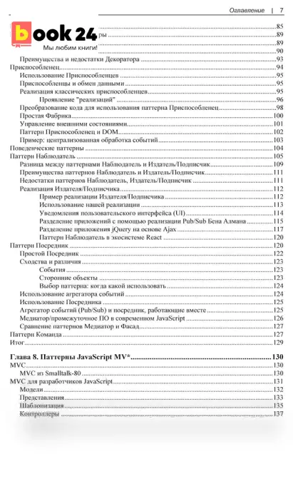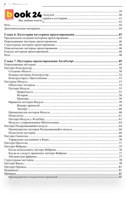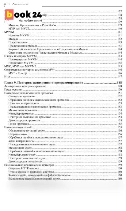 .В этой книге вам предстоит ознакомиться с ключевым словом this и новыми типами объектов. В ней поясняется, как создавать повторно используемый код посредством инкапсуляции, перегрузки и наследования. В книге обстоятельно рассматриваются современные приемы отладки и тестирования кода, а также инструментальные средства разработки вроде Jasmine, PhantomJS и Protractor. Настоящее издание книги завершается главами, посвященными построению одностраничных веб-приложений, господствующих в современной веб-разработке.