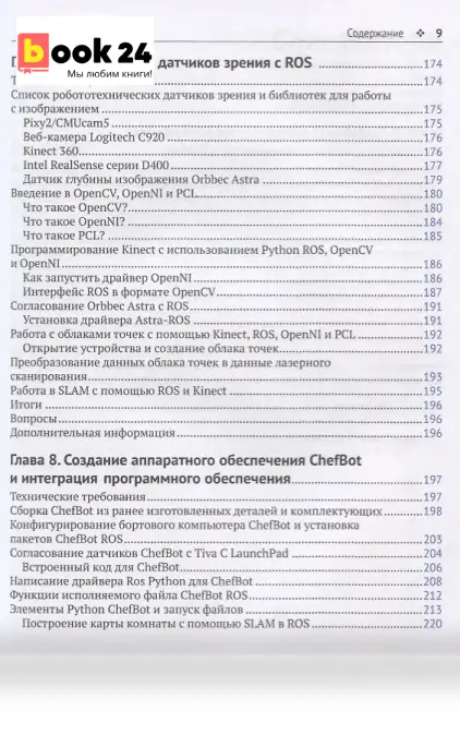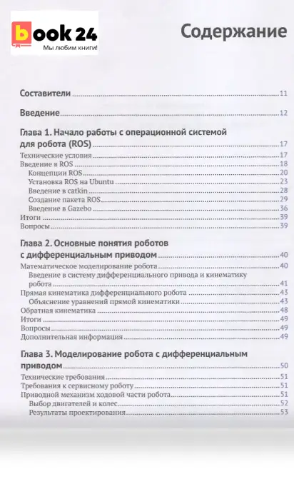 Создайте с нуля автономный мобильный робот! .Принципы работы робота с дифференциальным приводом .Знакомство со средой моделирования робота Gazebo .Проектирование оборудования и схем .Согласование приводов и датчиков с контроллером робота .Исследование работы различных 3D-камер глубины .Реализация автономной навигации .Создание графического пользовательского приложения .Robot Operating System (ROS) - один из самых популярных фреймворков программного обеспечения в области робототехники как в исследованиях, так и в производстве, имеющий готовые функции для реализации различных возможностей в роботе. .Эта книга начинается с того, что показывает вам основы ROS в совокупности с основами работы и управления роботов с дифференциальным приводом. Затем будут рассмотрены принцип разработки и создания модели робота и процесс проектирования и визуализации его физики и логики с помощью ROS. Двигаясь дальше, мы соберём робота с использованием соответствующего оборудования и настроим работу с его приводами. Затем вы научитесь настраивать датчики глубины и лидары и программировать их работу с помощью ROS. Наконец, вы создадите GUI (графическое пользовательское приложение) для вашего робота, используя фреймворк QT. .К концу урока у вас будет четкое представление о том, как интегрировать и собирать все элементы в роботе и как укомплектовать всё программное обеспечение в пакет.