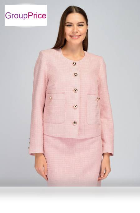 Элегантный жакет в стиле шанель дополнит строгие и нарядные образы. У него аккуратный округлый вырез горловины и рукава полной длины. На груди располагаются вытачки, чтобы жакет прекрасно сел на любую фигуру. Классический прямой крой дополнен двумя накладными карманами спереди, которые застегиваются на выразительные пуговицы, которые также есть на рукавах и на линии застежки. Свободный жакет выполнен из приятной теплой ткани в клетчатый узор. Широкий крой не подчеркивает нюансы фигуры, скрывает возможные ее недостатки, акцентируя все внимание на Вашу утонченность. Оптимальная длина до бедра будет прекрасно смотреться на женщинах разного роста и типа фигуры. Твидовый жакет придется по вкусу не только взрослым женщинам, но и молодым девушкам, которые предпочитают изысканный вкус в одежде. Выбирайте стильную модель для праздников, деловых встреч, культурных мероприятий. Сочетайте эффектную модель с комплектной юбкой из нашего ассортимента или с однотонными брюками или юбками. Вы можете носить жакет застегнутым на все пуговицы или нарспашку, если наденете под него блузку или вечерний топ. Завершите образ строгой обувью и подходящими украшениями и аксессуарами.