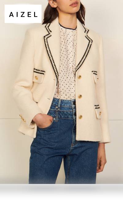 Жакет цвета экрю с контрастной отделкой продается в интернет-магазине Aizel