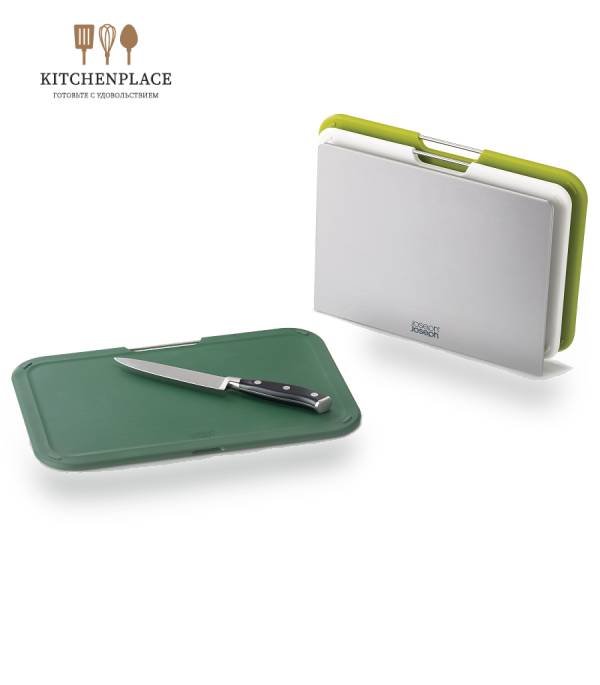 Набор из 3 разделочных досок Nest Large от бренда Joseph&Joseph - это незаменимый аксессуар для вашей кухни! Комплект подходит для выполнения различных задач по приготовлению пищи. В наборе представлена подставка, которая удерживает аксессуары на расстоянии, позволяя воздуху равномерно циркулировать между ними. Чтобы облегчить нарезку продуктов, доска снабжена фактурной поверхностью. Резиновые ножки препятствуют скольжению изделия по кухонной столешнице. Эргономичная ручка в виде прутика из нержавеющей стали дает возможность легко брать доску во время готовки. Для удаления остатков пищи рекомендуется ручное мытье и сушка. Британская компания Joseph&Joseph занимается созданием разнообразной утвари для кухни. С 2003 года - момента основания компании, братья Richard и Antony Joseph создают самые технически инновационные, дизайнерские продукты для рынка кухонной утвари. Все предметы от Joseph&Joseph заряжают позитивом и хорошим настроением. В цветовой гамме преобладают яркие, сочные цвета - на вещь хочется смотреть и не хочется выпускать из рук. Главное кредо компании - это функциональность создаваемых предметов, их качество, дизайн и инновация. Пробудить и поддерживать желание готовить и создавать свою знаменитую и удобную кухню! Характеристики: Материал: Полипропилен, ABS пластик, термопластичная резина Вес:1420 гр Размеры в упаковке:32,9 х 22,9 х 7,5 Размеры без упаковки:32 х 22,1 х 6,5