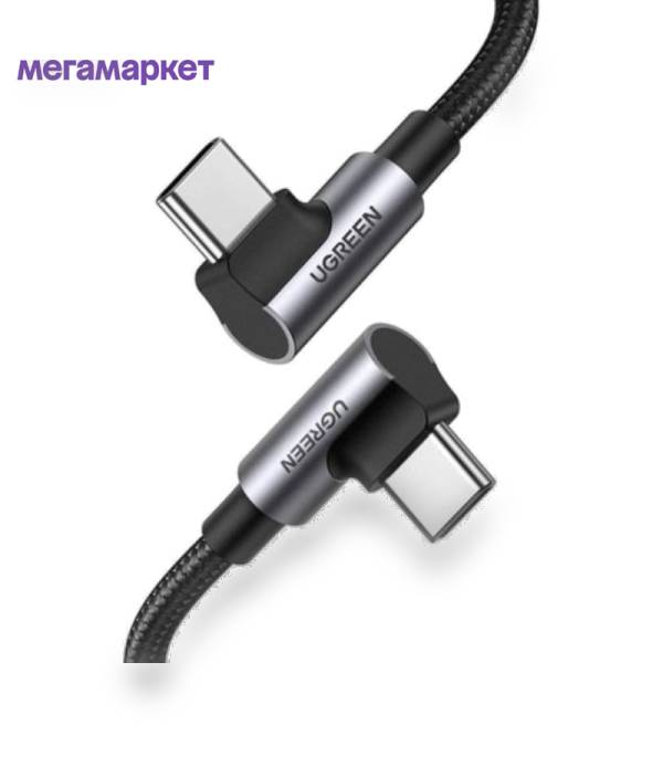 Кабель оснащен угловым разъемом USB Type-C, что обеспечивает удобство использования и позволяет подключать устройства под любым углом.