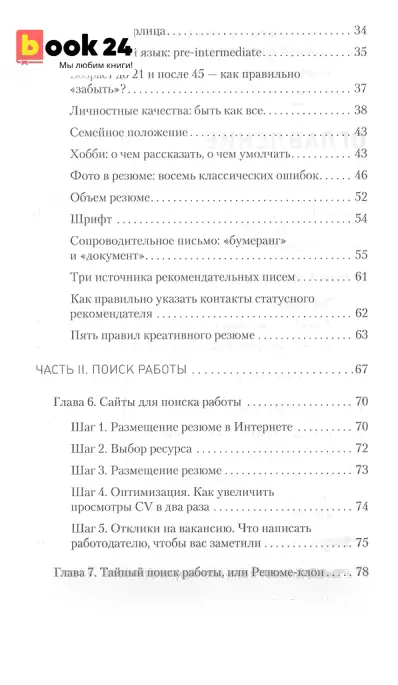 Остроумная, дружелюбная, неожиданная настольная книга для тех, кто находится в поиске работы, которая, наконец, дает ответы на насущные вопросы. Да, если колечко в носу это ваше обручальное кольцо, можете отправляться с ним на собеседование. Нет необходимости рассылать сотни резюме по электронной почте. В своей книге Элен Ривз авторитетно, убедительно и весело сводит свой жизненный опыт по найму, наставничеству, написанию резюме в необходимое пособие для юных соискателей. Книга шаг за шагом ведет читателей через всегда сложный, но сегодня особенно актуальный процесс. Начните поиски работы с профессионального образа мыслей - организуйте себя, сделайте визитные карточки, создайте солидный адрес электронной почты, и обзаведитесь рабочим мобильным телефоном. Работая в сети важно соблюдать правило трех - попробуйте отправлять три письма по электронной почте или делать три звонка ежедневно, но не более. "Речь в лифте" - отработайте свое блиц-резюме, пока едет лифт, и будьте готовы использовать его в самые неожиданные моменты. Искусство написания раболепствующих сопроводительных писем и убийственных резюме - от плана составления, ловушек, грамматических "можно" и "нельзя" до вопроса, почему никогда не следует указывать, что "рекомендации предоставляются по требованию", сообщать какой у вас был средний балл по учебе, допускать ошибки в тексте. Как одеваться на собеседование, а также, зачем облачаться в деловой костюм во время собеседования дома, по телефону. О чем говорить честно: о гражданстве и прошлом уровне зарплаты. И о чем никогда не говорить: "я хочу получить эту работу, потому что мне нужна медицинская страховка". И когда вы уже на месте, как договариваться о зарплате, какой ожидать отклик, и основные принципы поведения на первой работы: будьте инициативны, скромны и готовы помочь, никогда не относитесь к начальнику, как к задушевному другу и всегда говорите: "я это выясню" вместо "я не знаю". Теперь вы на правильном пути.