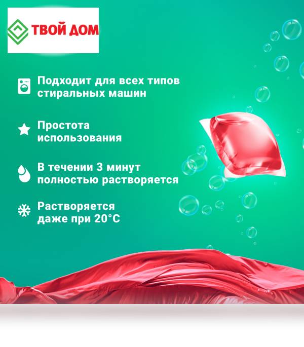 капсулами для стирки "Лаванда" от Мой Выбор 3в1 . Эти инновационные капсулы объединяют в себе три ключевых действия: глубокое очищение, мягкость ткани и защиту цвета. Теперь ваша одежда будет не только безупречно чистой, но и мягкой на ощупь, сохраняя свою яркость и насыщенность. Каждая капсула наполнена изысканным ароматом лаванды, который перенесет вас в тихие поля Прованса, наполнив дом ощущением свежести и покоя. Нежный и свежий аромат останется на ваших вещах, создавая атмосферу уюта и комфорта. Большая упаковка на 100 капсул обеспечит вас достаточным запасом моющего средства на долгие месяцы вперед. Забудьте о сложностях выбора средств для стирки – достаточно одной капсулы, и она справится со всеми задачами. Оживите свой гардероб с капсулами "Лаванда" от Мой Выбор 3в1!