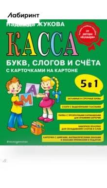 В обучающий комплект «Касса букв, слогов и счёта» входят: 1) карточки с заглавными и строчными буквами; 2) слоги с выделенными гласными; 3) наборное полотно для складывания слогов и слов; 4) папка с прозрачными кармашками, в которые вкладываются карточки; 5) карточки с цифрами, математическими знаками и основными знаками препинания. Этот дидактический материал поможет быстро научить детей читать. Рекомендуется использовать в комплекте со знаменитым «Букварём» Надежды Жуковой.