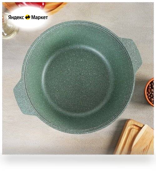 Кастрюля-жаровня, 5 л, стеклянная крышка, антипригарное покрытие, цвет фисташковый мрамор продается в интернет-магазине Яндекс Маркет