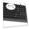 Клавиатура имеет закругленную форму клавиш и подставку для запястий, что повышает удобство управления. Она оснащена 104 клавишами, цифровым блоком и горячими клавишами для быстрой активации мультимедийных функций.