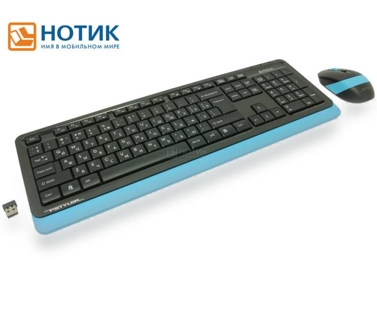 Комплект беспроводной клавиатура + мышь A4Tech Fstyler FG1010, Wireless/USB, Черный/Синий FG1010 BLUE продается в интернет-магазине Нотик