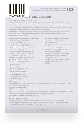 Клавиатура + мышь Oklick 222M клав:черный мышь:черный USB беспроводная slim Multimedia продается в интернет-магазине 123 Ru