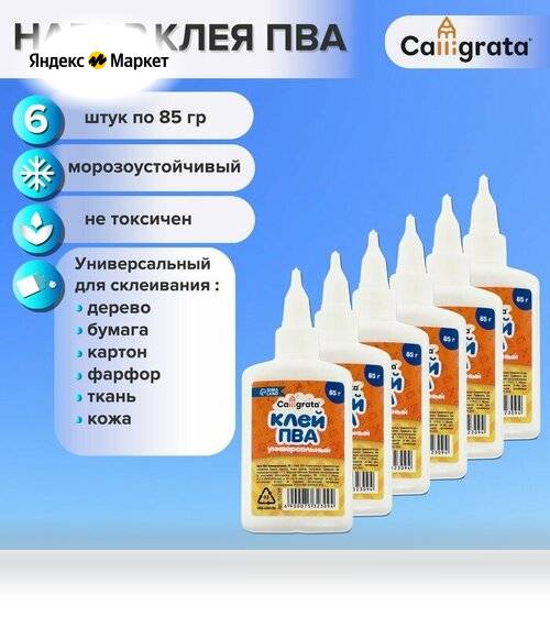 Клей ПВА Calligrata, с дозатором, набор из 6 шт по 85 грамм продается в интернет-магазине Яндекс Маркет