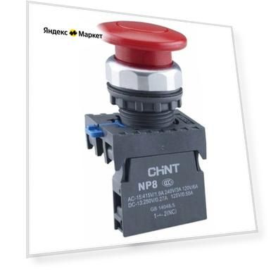 Кнопка управления "Грибок" d40мм (2) с самовозвратом NP8-01M/1 без подсветки красн. 1НЗ IP65 (R) 667261 CHINT продается в интернет-магазине Яндекс Маркет