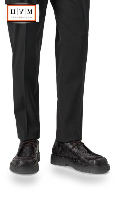 Ботинки Haddock с фактурным швом сплели в знаковой технике Intrecciato из телячьей кожи. Пару поставили на литую широкую подошву с глубоким протектором.