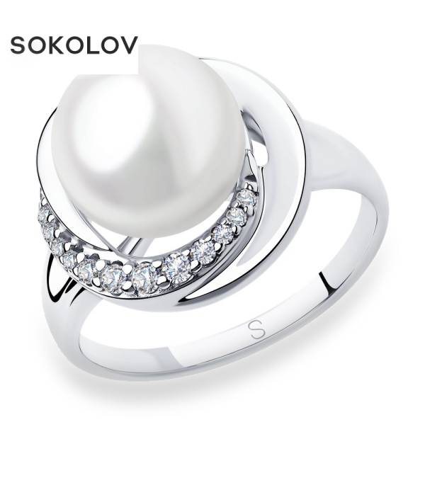 Кольцо SOKOLOV из серебра с жемчугом и фианитами продается в интернет-магазине SOKOLOV