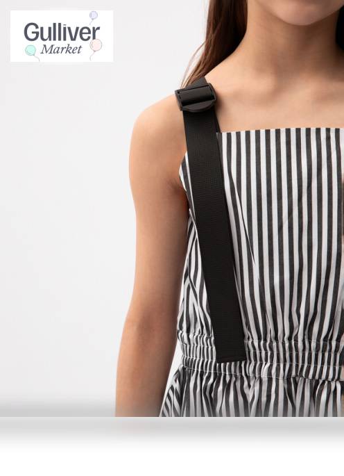 Комбинезон для девочки приталенный из текстиля на широких бретелях полосатый Gulliver (140) продается в интернет-магазине Гулливер Маркет