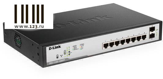 Коммутатор D-LINK DGS-1100-10MPP/C1A Настраиваемый коммутатор EasySmart с 8 портами 10/100/1000Base-T и 2 портами 1000Base-X SFP (порты 1–8 с поддержк продается в интернет-магазине 123 Ru