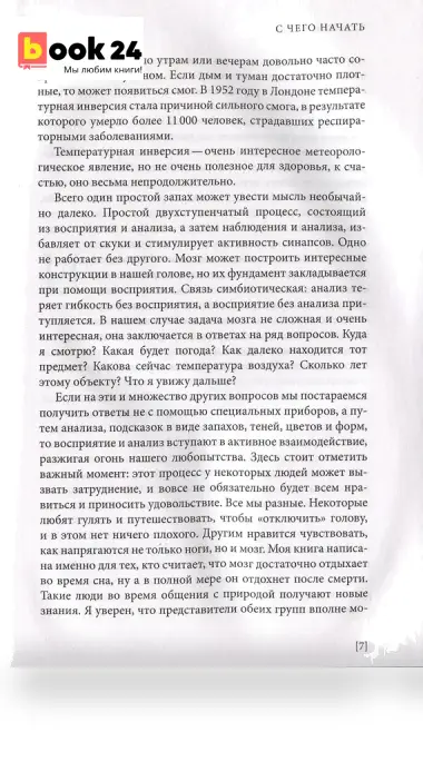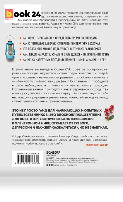 Книга писателя и мореплавателя Тристана Гули поможет вам понять природу так, как это делает он сам. Вы найдете в ней больше 850 советов по прогнозированию и наблюдению за окружающей средой, которые автор собирал на протяжении десятилетий, проведенных в прогулках по ландшафту вокруг своего дома и по всему миру. Путешествуете ли вы по стране или гуляете по городу, вдоль побережья или ночью, это лучший ресурс о том, что могут раскрыть земля, солнце, луна, звезды, растения, животные и облака — если только знать, как смотреть!