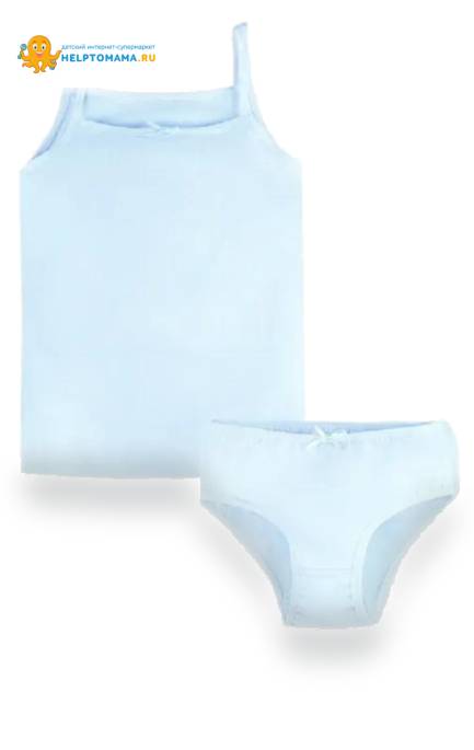 Комплект белья для девочки состоит из майки и трусиков. Выполнен из эластичного супрема - материала, представляющего собой кулирную гладь с добавлением лайкры. Это хлопчатобумажное тонкое эластичное полотно, тонкий шелковистый хлопчатобумажный трикотаж очень высокого качества. Супрем не парит, пропускает воздух, хорошо тянется и носится. Детали: бантик.