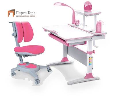 Комплект Mealux EVO-30 (парта Evo-Diego с лампой + кресло Y-115 с двойной спинкой)(дерево) Розовый Белый продается в интернет-магазине ПартаТорг