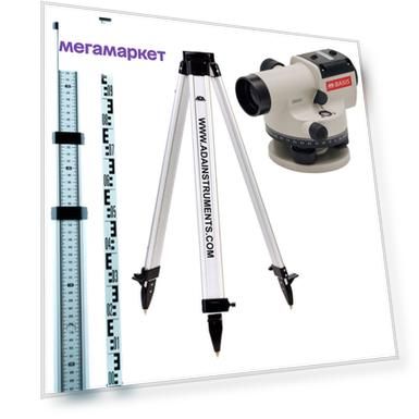 Оптический нивелир ADA BASIS, сертификат о первичной поверки, руководство по эксплуатации, транспортировочный кейс, ключ для юстировки нитей, шестигранный ключ, нитяной отвес, штатив, рейка, свидетельство о поверке в электронной форме в базе аршин.