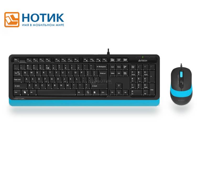 Комплект проводной клавиатура + мышь A4Tech Fstyler F1010, USB, Черный/Синий F1010 BLUE продается в интернет-магазине Нотик