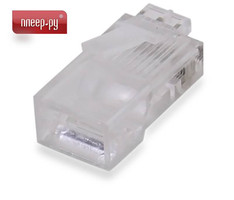 **Коннектор** предназначен для ручного обжимного соединения в одну сеть слаботочных силовых линий с многожильными кабелями, например, для подсоединения телефонов, домофонов, компьютерной разводки. Маркировка RJ (Registered Jack) обозначает тип сетевого интерфейса, последующие буквенные и цифровые обозначения — количество и тип клемм при соединении.