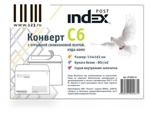 Конверт C6 Index Post IP1009.10 10 шт 80 г/кв.м белый IP1009.10 продается в интернет-магазине 123 Ru
