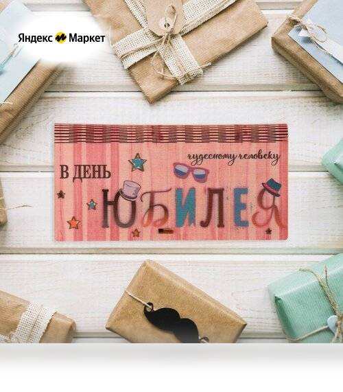 Конверт деревянный "В День Юбилея!" шляпы, звездочки продается в интернет-магазине Яндекс Маркет