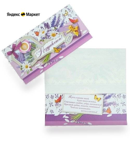 Конверт для денег "Поздравляем!" цветы, бабочки продается в интернет-магазине Яндекс Маркет